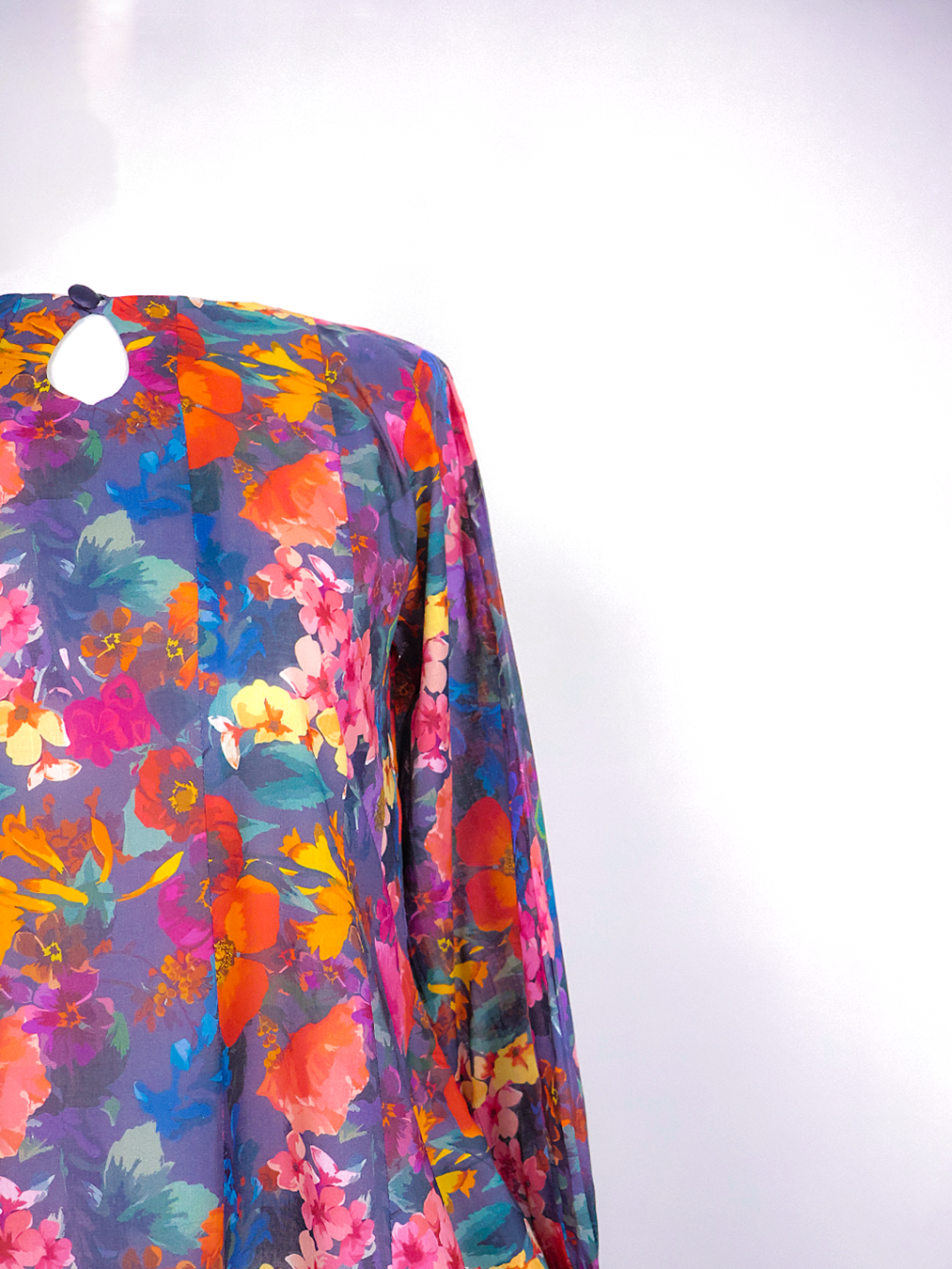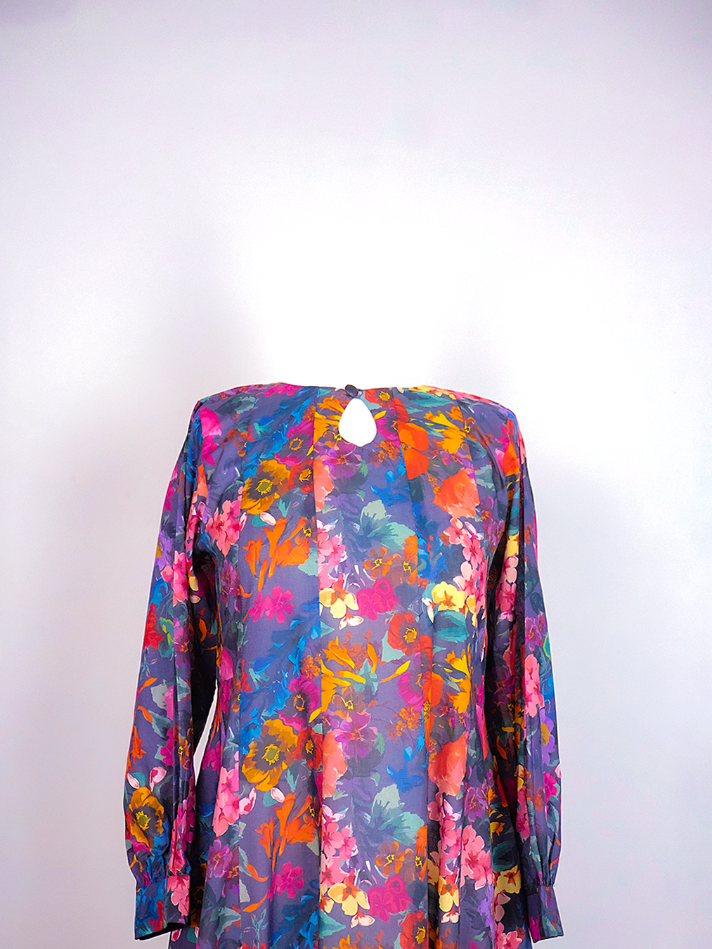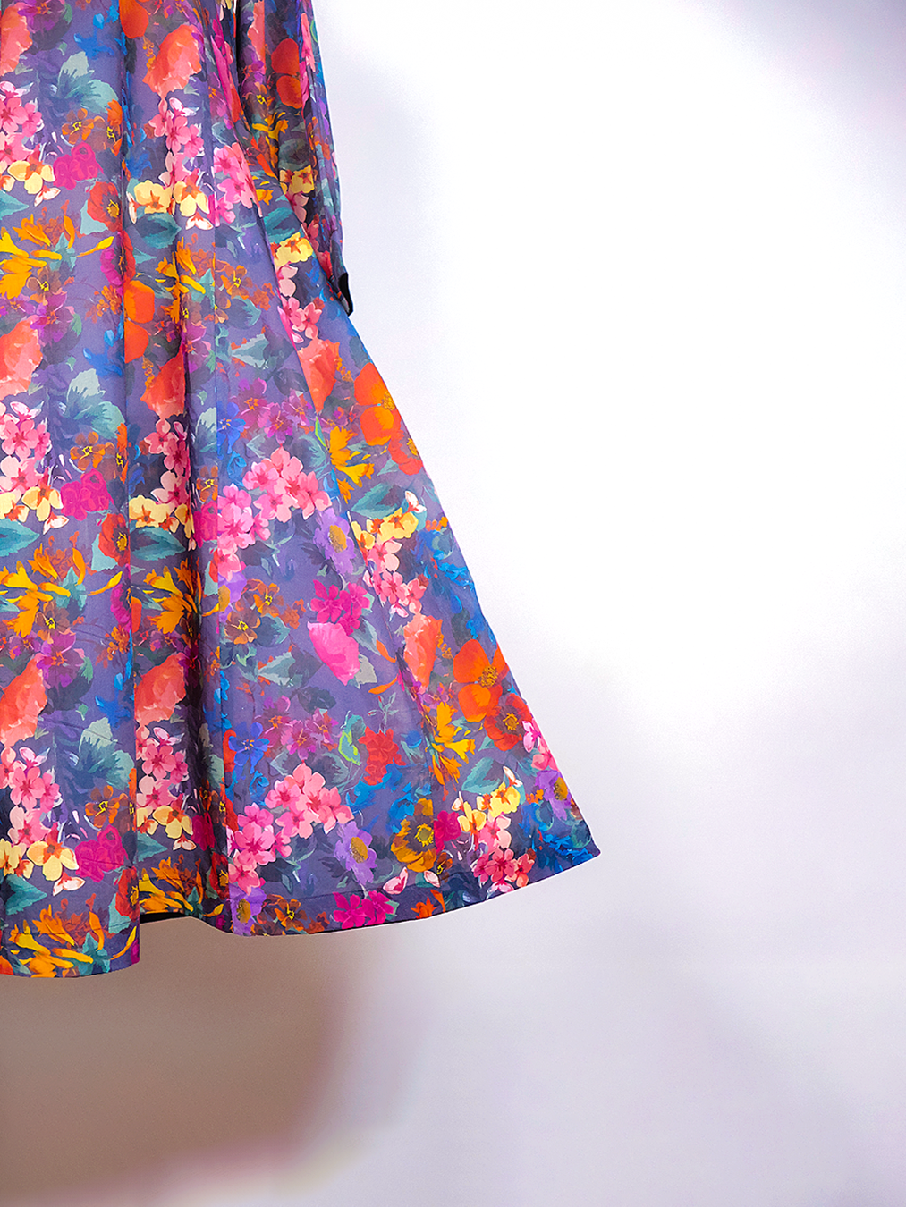 Multi-Colored Floral Flared Lawn Dress with drop neckline.